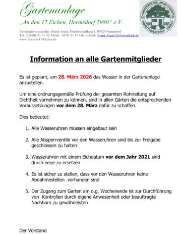Aktuelle Informationen: freie Gärten